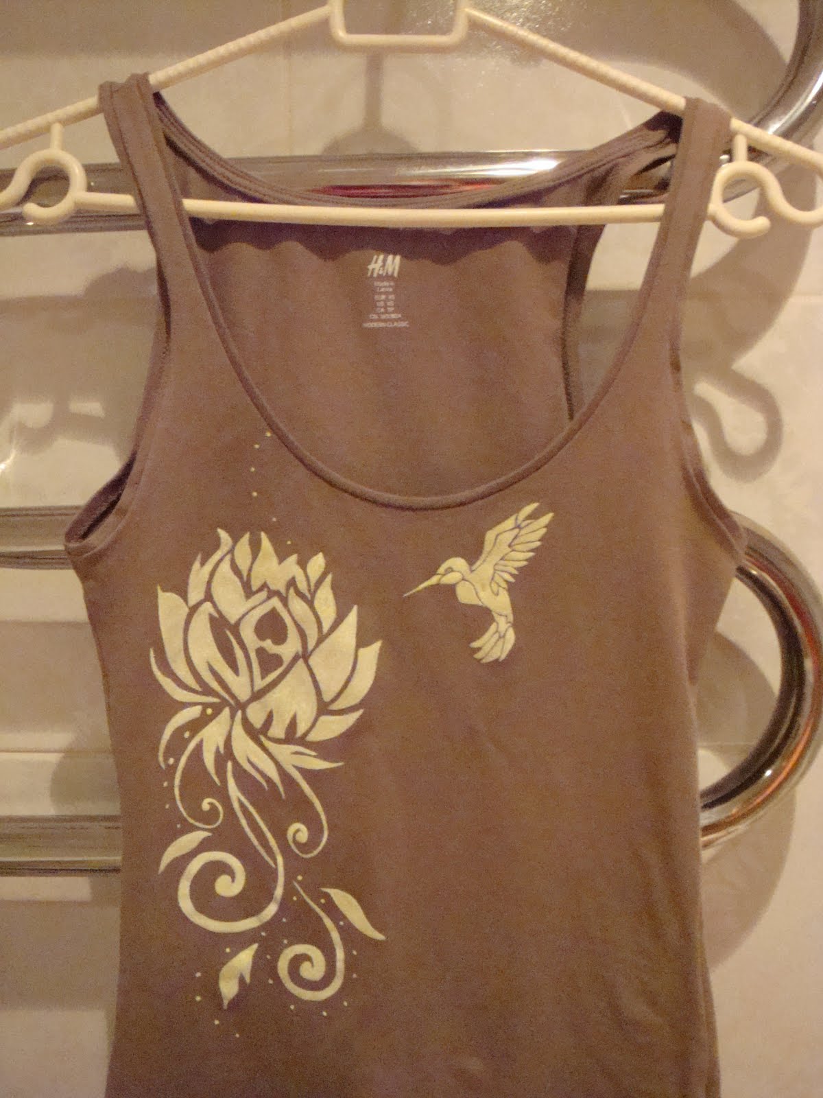 Заодно покажу и свои майки.Сначала с золотыми рыбками.Мне она очень нравится,к тому же это мой первый опыт в этом деле :)